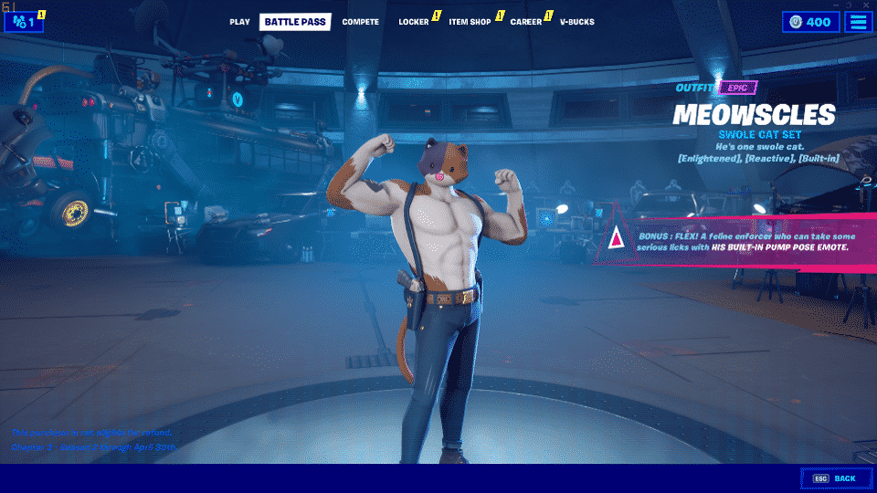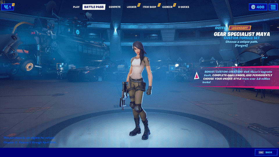 Next, on the opposite side of the lobby, we have the Upgrade Vault. For the first time ever, we can customize a skin to look exactly how we want it. This time we have Maya, but its possible we will get a new one each season and perhaps Item Shop skins too. By completing challenges, we get to customize Maya’s outfit, hair, tattoos and more, and in total, there are over 3.8 million variations, meaning you might never encounter an identical version to yours.